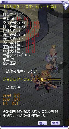 武器やステータスの補正を登録するだけで合計値が自動的にでます。でもなんといっても良いのが一度登録した装備アイテムのデータは保存されるので次にまた 利用することが可能な点です!あと、同じアイテムでも補正が違うんですが自分で登録できるというところも魅力。またキャラクターのステータスも登録可能な ので、ここで装備合計を出して、Talesweaver調査2で魔物計算を行うのがお勧め!