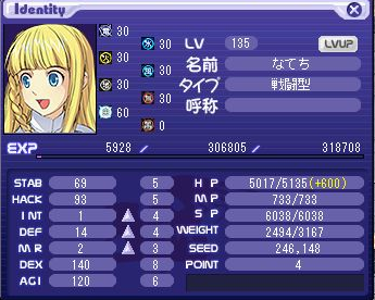 日記を見てみると前に再振りしたのがLv105のときみたいだったからLv30分ぶり。