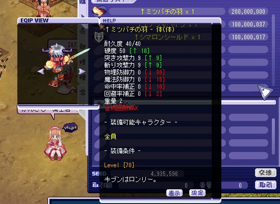 感想としては背中の火力装備って要塞羽、聖羽、蝙蝠、DWLなど限られたものしかなくてしかも、どれもめちゃめちゃ高い!のが現状だけど新規背中装備にはS,H,Iなど火力も付いていてしかも、ショップの闇商品!みたいなので簡単に手に入るし、強化上限もS8とかH11とか結構高目。実際に実装されたら街中溢れかえりそう。